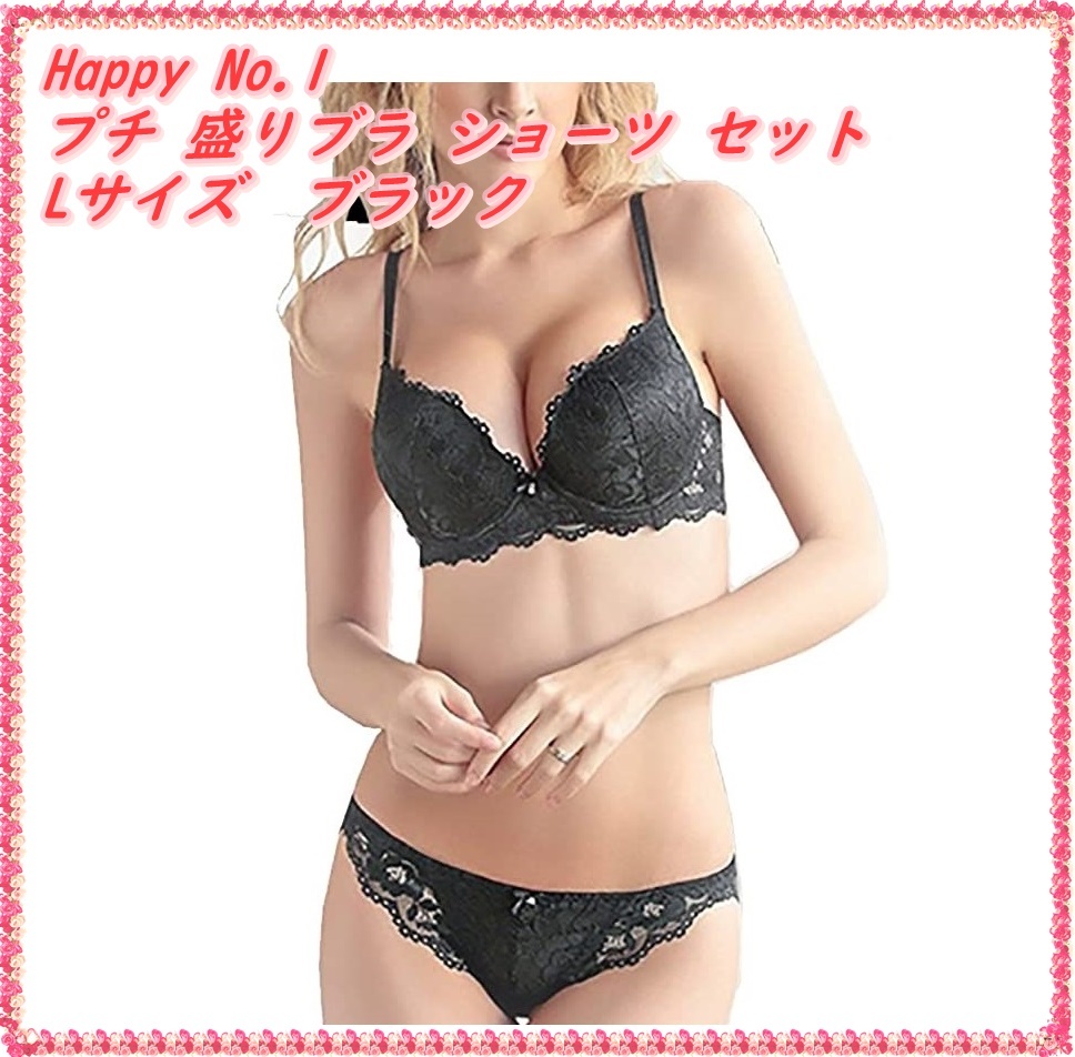 - Happy No.1 プチ 1カップUPブラ レース ブラジャー ショーツ 上下2点セット レディース 下着 厚めのパッド (L, ブラック)