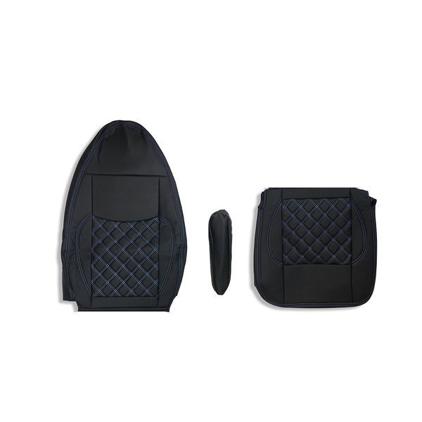 - 三菱ふそう ベストワン ファイター シートカバー 艶無し 黒 運転席用 ダイヤモンドブルーステッチ AP-CV006R-BL
