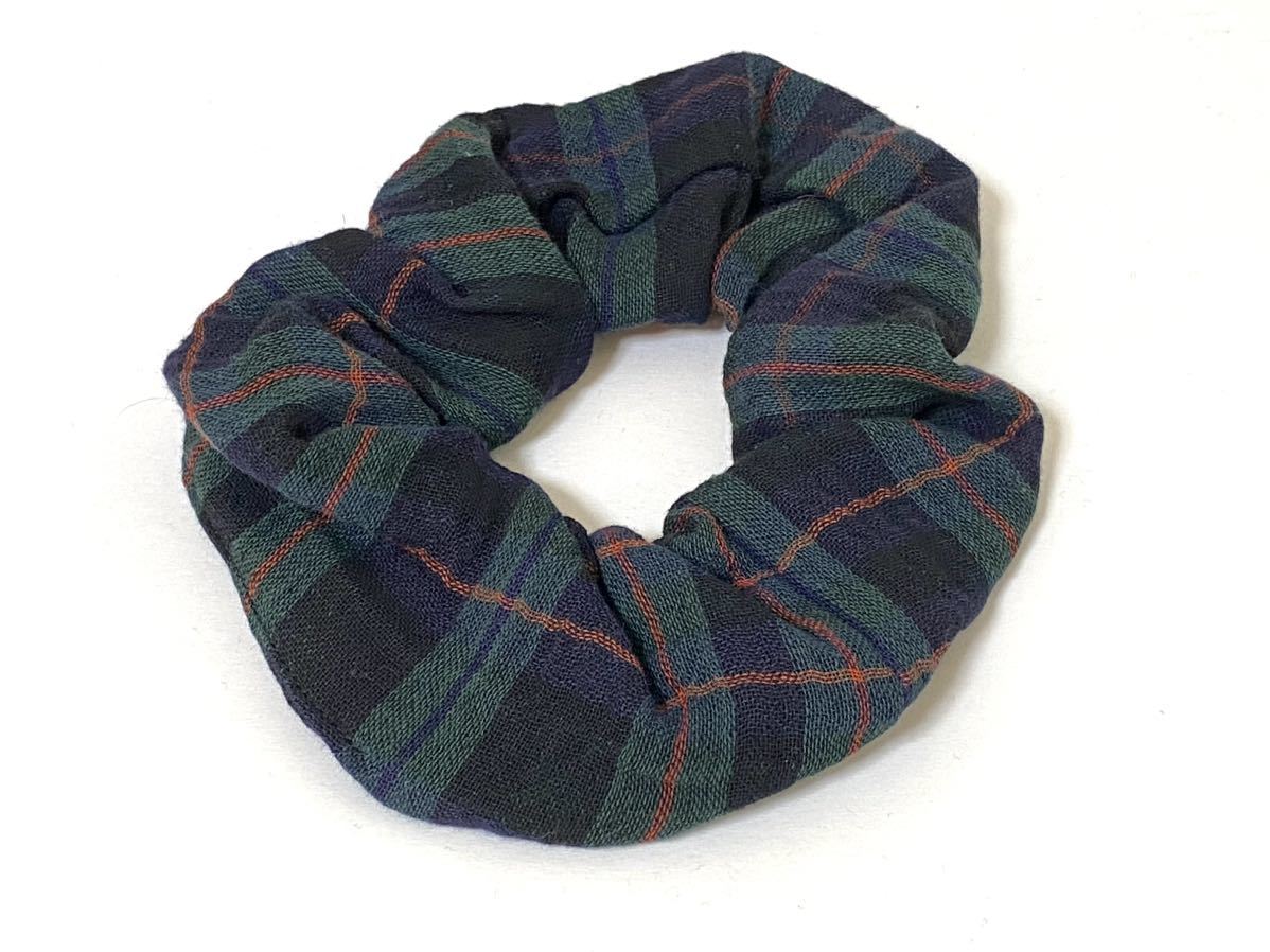 - ハンドメイド★シュシュ wガーゼ グリーンチェック(614)値下げ