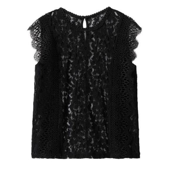 - GU/ジーユー レースデザインT ノースリーブ ブラック 黒 L