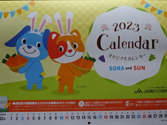 - カレンダー 1円 定形外郵便 2023 JA 壁掛け 令和五年 未使用 即決