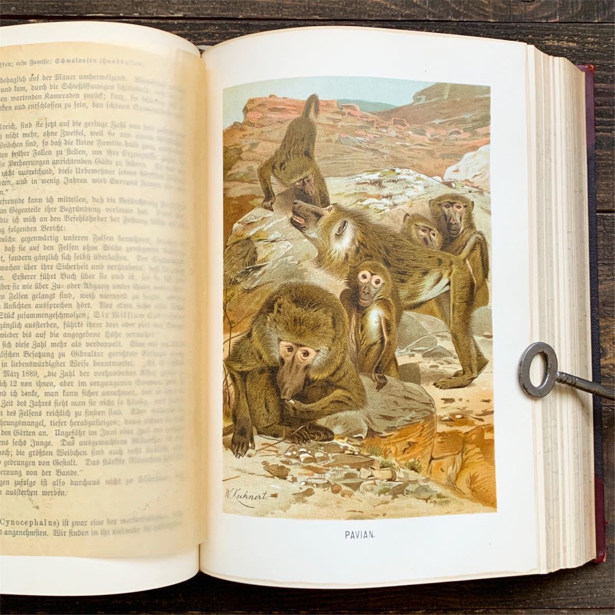 - [1893年]ドイツの古い哺乳類の図鑑(Saugetiere 1)/アンティーク ヴィンテージ リトグラフ 猿 コウモリ ライオン 虎 ゴリラ 雰囲気◎/