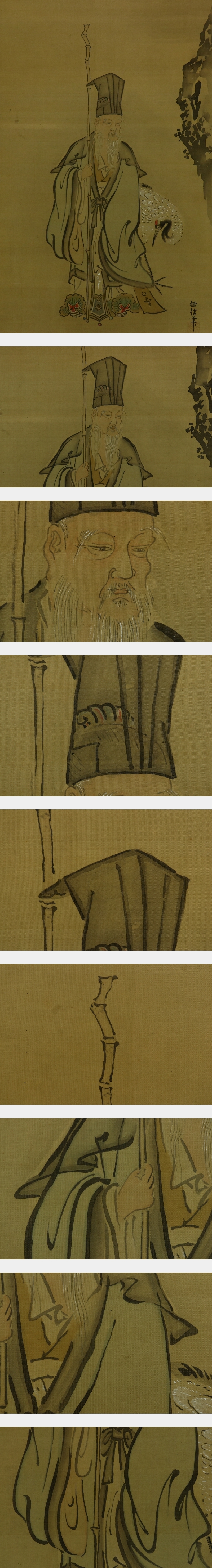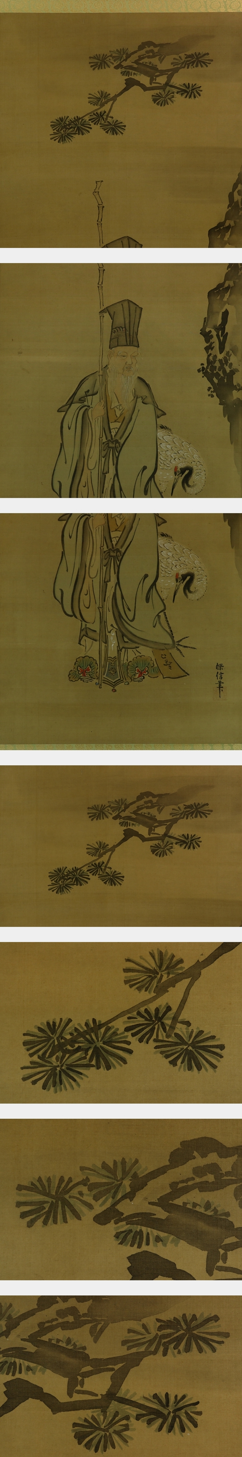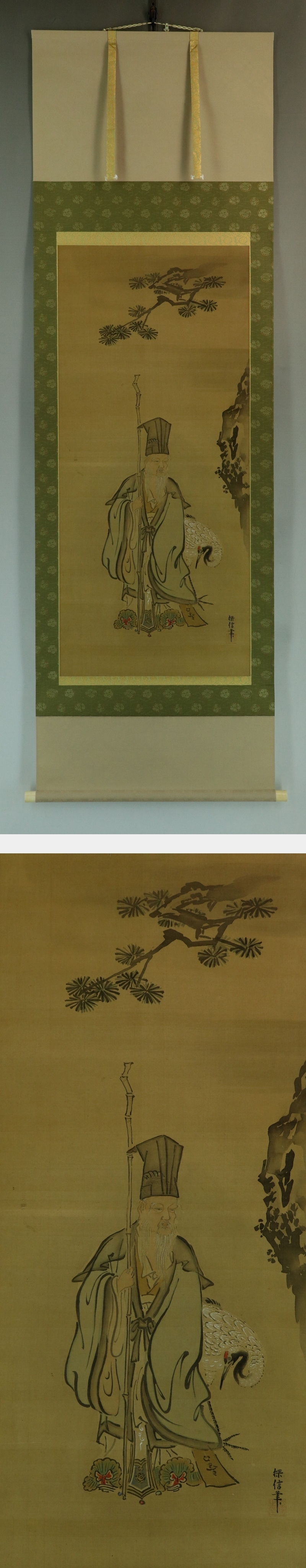 - 【真作】狩野探信【寿老人】◆絹本◆合箱◆掛軸 u10170