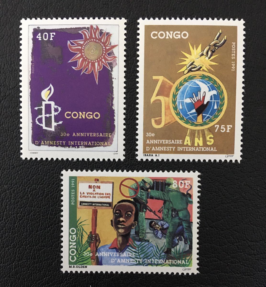 - コンゴ アムネスティ・インターナショナル30年 人権 3種完 未使用 NH