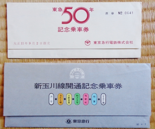 - 東急新玉川線開通記念乗車券・50年記念乗車券