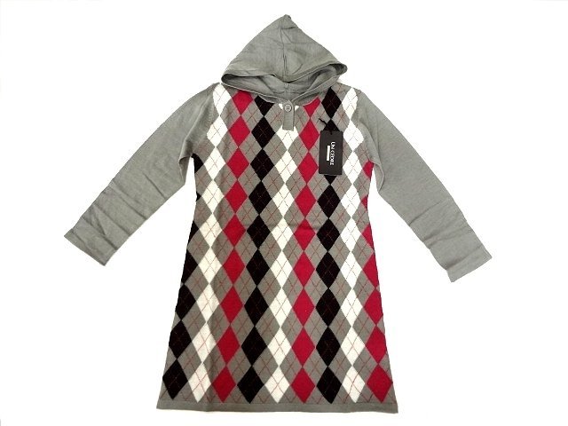 - 新品 un cedre アーガイル フード付き ニット セーター グレー パーカー ロング丈ニット チェック ニットチュニック