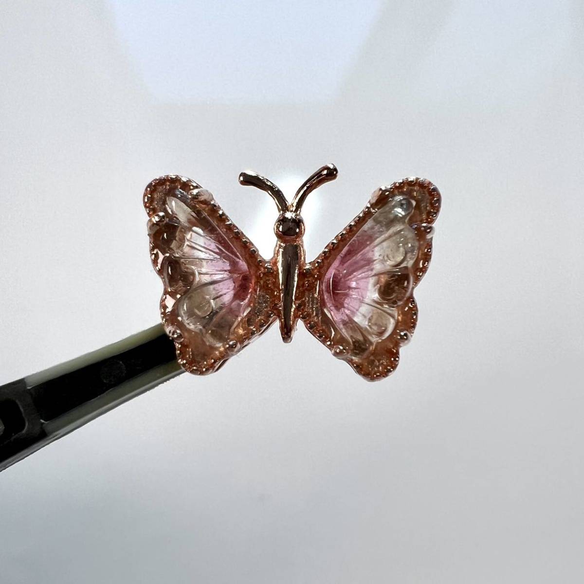- ハイクオリティ ウォーターメロントルマリン 蝶パーツ ブレスレット 7 トルマリン