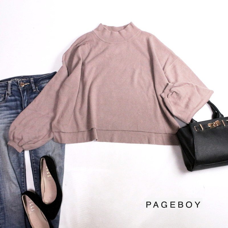 > 美品 厚手 PAGEBOY ページボーイ ■ 冬 あったか ハイネック プルオーバー セーター くすみ ピンク ゆったり ドロップショルダー