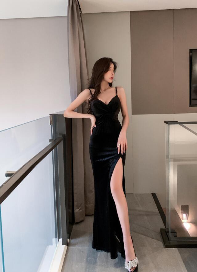 - 777 ワンピースladies レディース sexy ◇ 魅惑Style キャミワンピ ロング丈 ブラック