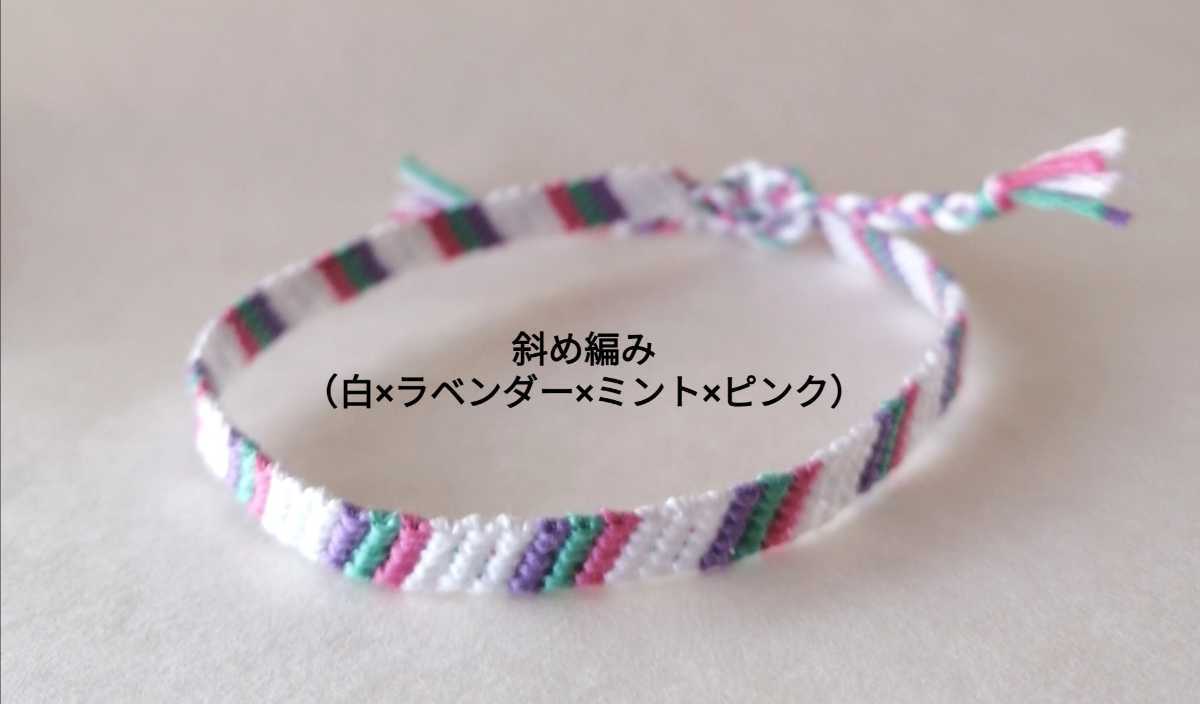 - ★即決★斜め編み《白×ラベンダー×ミント×ピンク》メルヘンカラー/ハンドメイドミサンガ