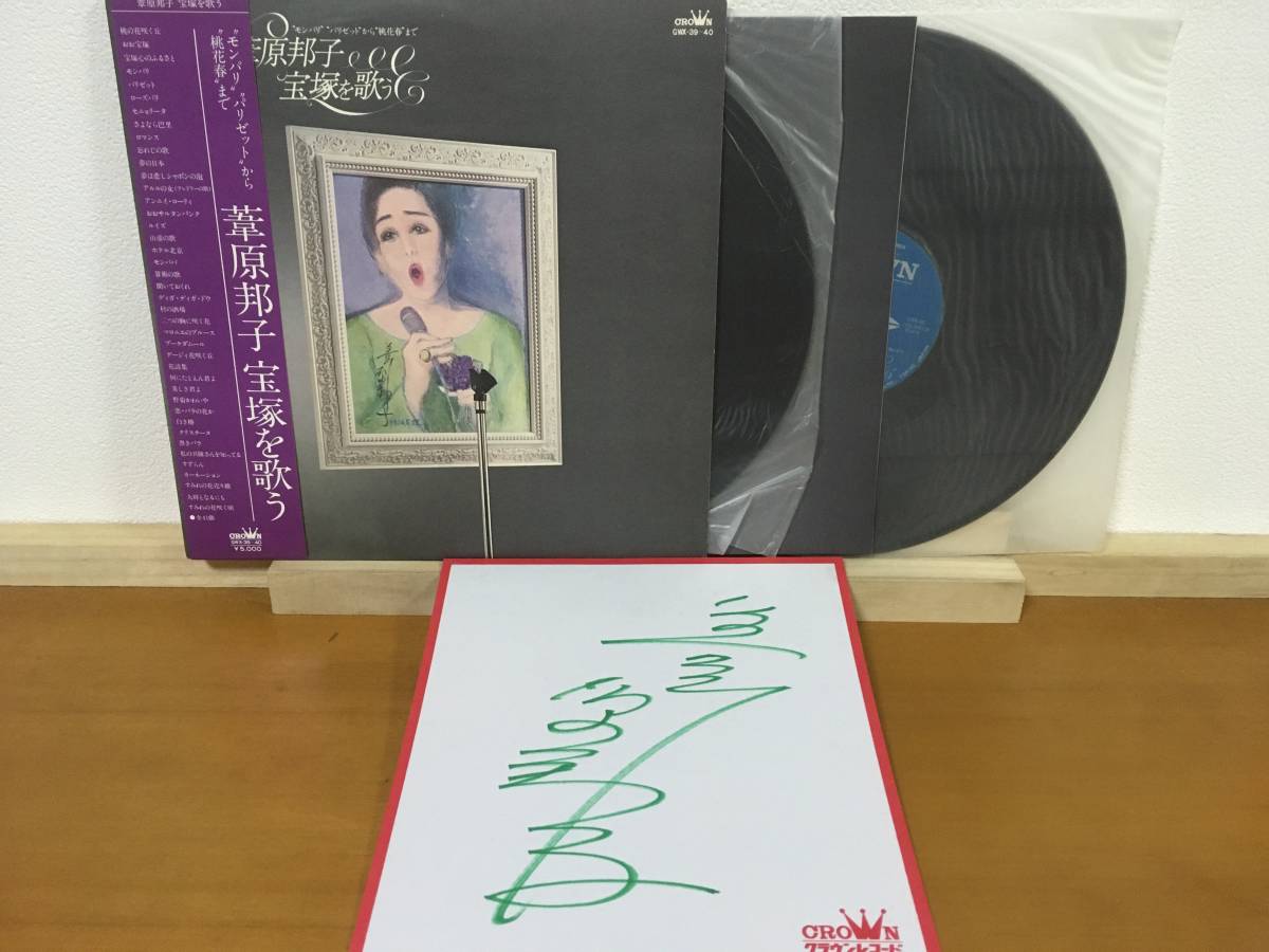 > 帯付2LP 直筆サイン色紙付 葦原邦子 宝塚を歌う GWX-39/40 モンパリ パリゼット シャンソン ashihara kuniko autograph