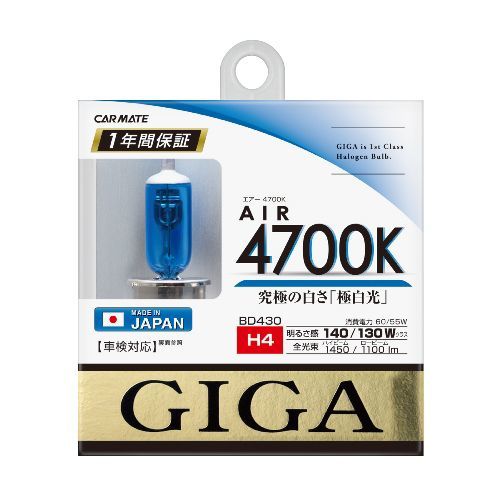 - カーメイト 【BD430】GIGA ハロゲンバルブ エアー4700K H4 60/55W
