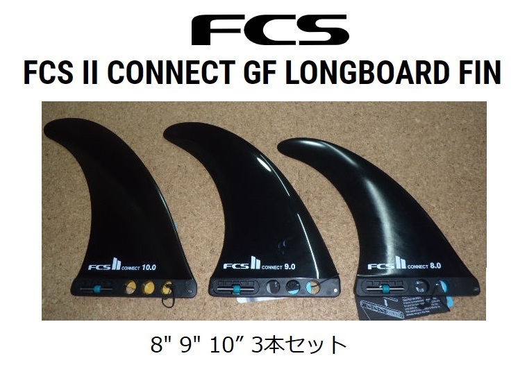 - 送料無料 FCS II CONNECT GF LONGBOARD FIN 3本セット(8・9・10”)新品