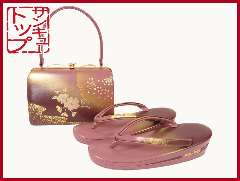 - ☆質:39トップ 着物館 和装小物 159 草履バックセット 本皮 梅花文様 中古 お慶びの席に