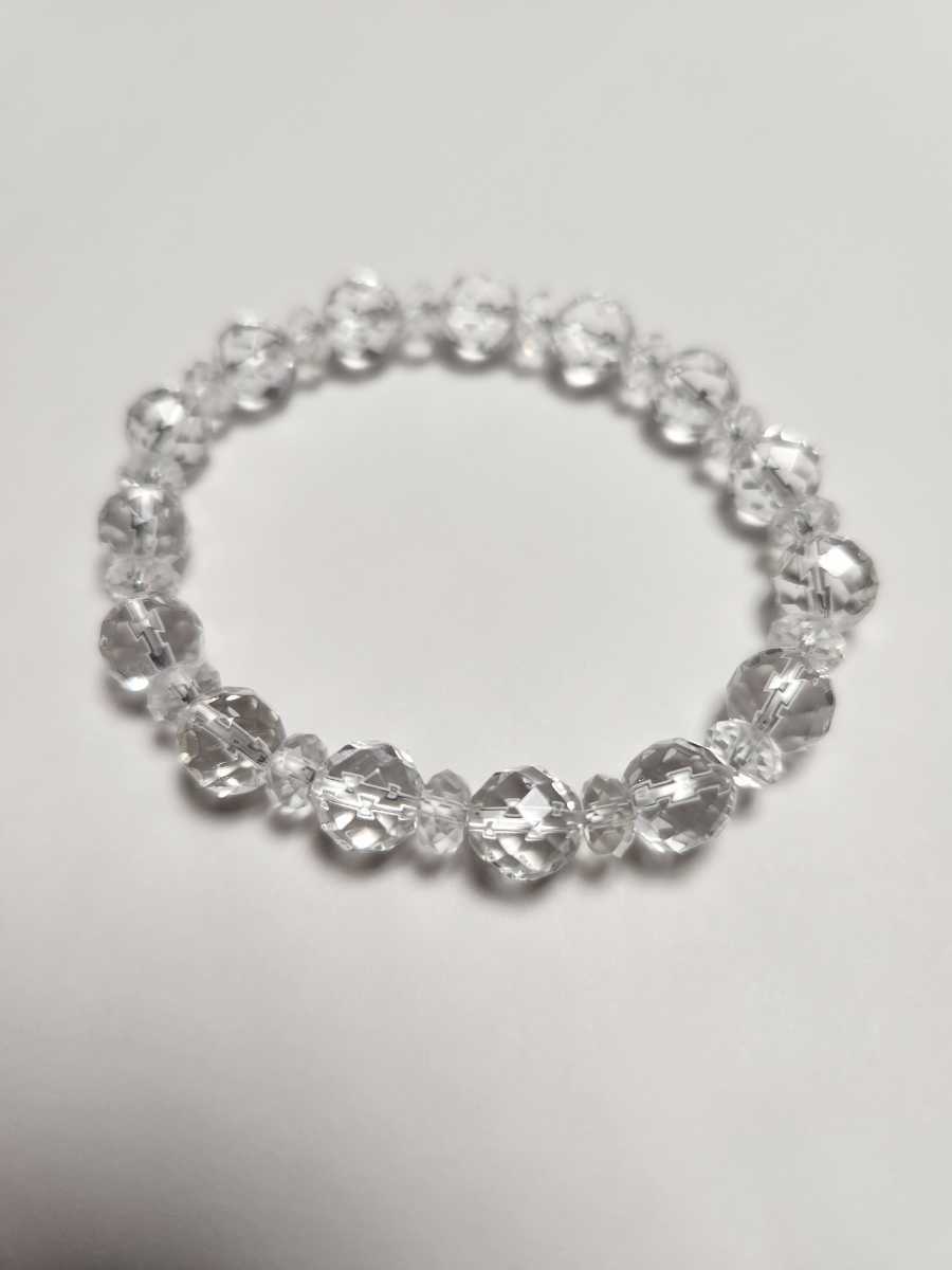 - 天然石 水晶 クリスタル ブレスレット 内周約16cm 8mm玉 天然クリスタル水晶 宝石質 5