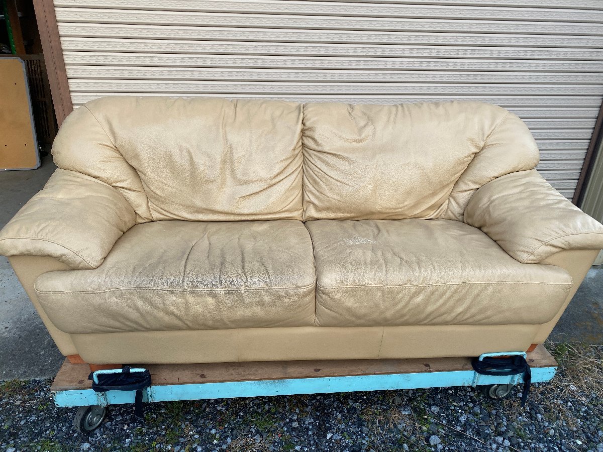 > ITALY イタリア製 FORME フォルメ社 総本革 3Pソファー ベージュ 岐阜県揖斐郡池田町 直接店頭お渡し i☆ ソファー 中古★キズ