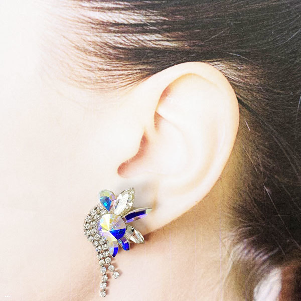 > 送料無料! 華やか! 太陽 ストーン 揺れる イヤリング キラキラ オーロラ クリア ウェディング パーティー 発表会 社交ダンス