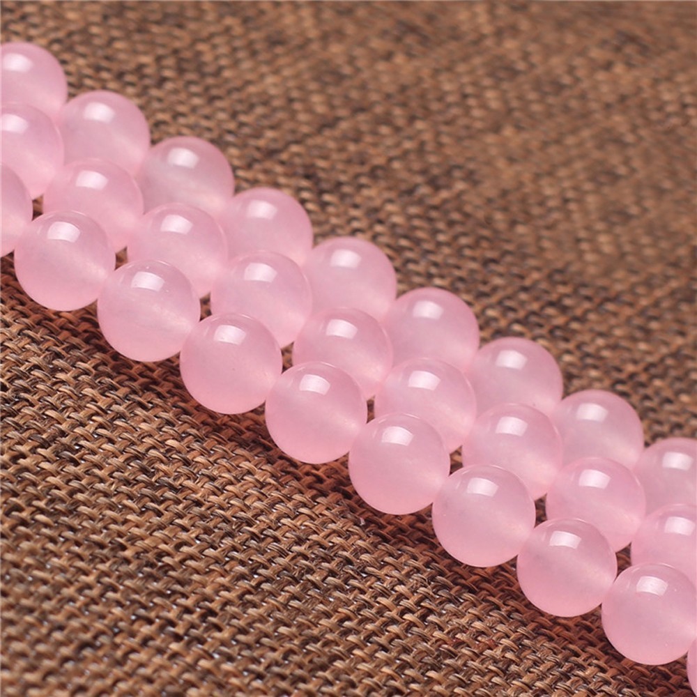 > [EasternStar] 海外発送 7A ピンク カルセドニー 粉玉髄 Chalcedony 玉径14mm 天然石 手作り 1連売り 長さ約40cm