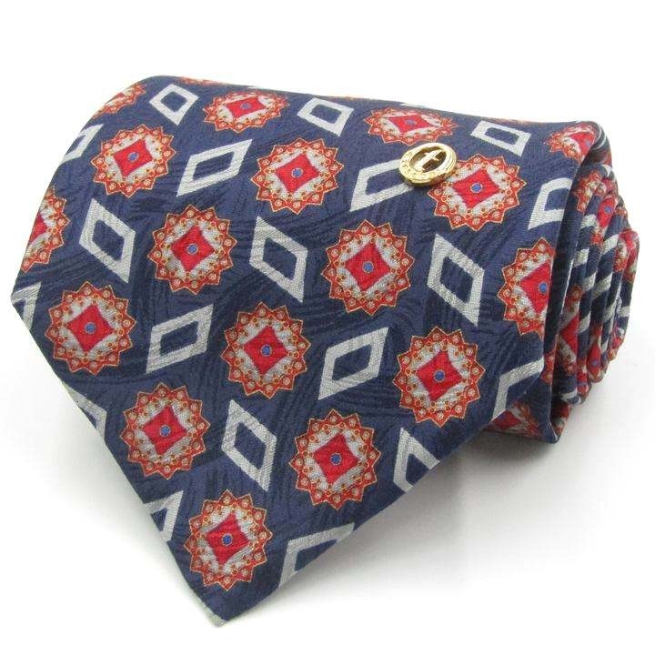 - ア・テストーニ 小紋柄 ワンポイント ドット柄 シルク 高級 伊製 ブランド ネクタイ メンズ 紺 良品 a.testoni イタリア老舗ブランド