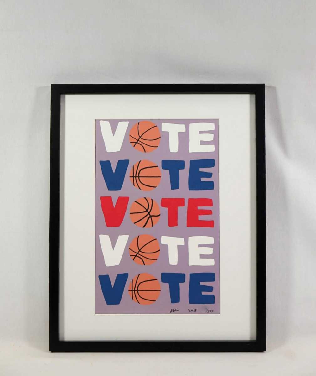 - 真作 ジョナス・ウッド 2018年シルクスクリーン「VOTE」画 25×39cm 米国作家 同一イメージの反復で重なり合う線や形、色で豊かに構成 7137