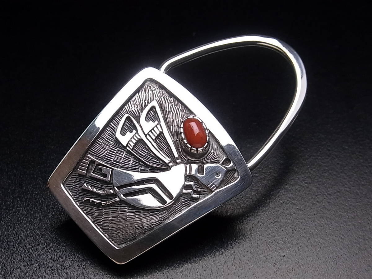 - ホピ族 伝統デザイン キーホルダー 幸運をよぶハチドリ 山珊瑚粒付き