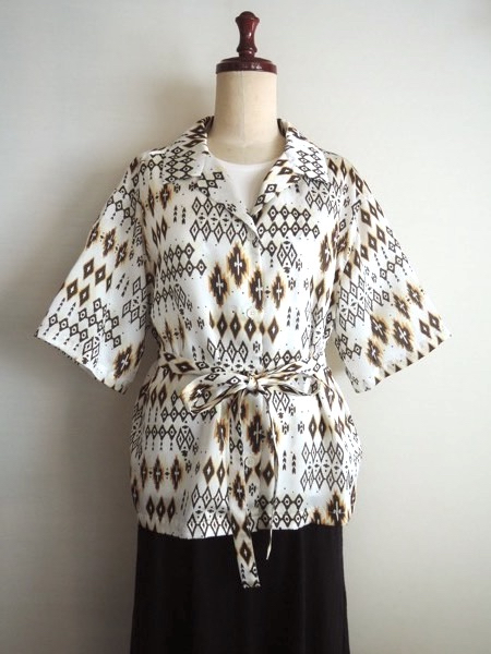- BEAMS LIGHTS ビームス ライツ イカット 開襟シャツ 羽織 共布ベルト付き