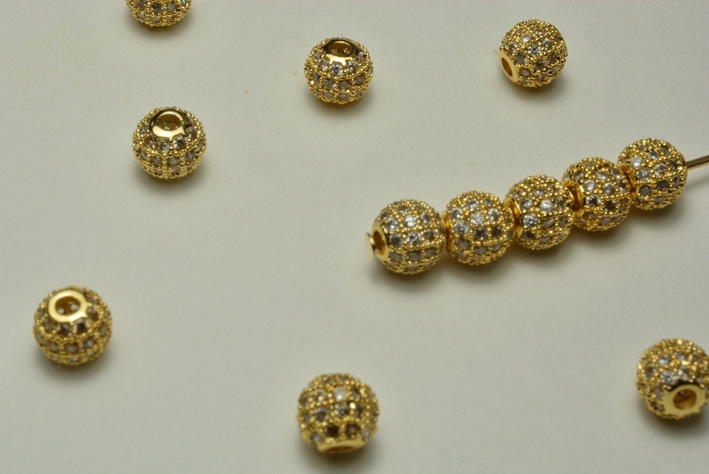 - ビーズクラブ ラインストーン ロンデル メタルビーズ ボール 金 ペア 2個 6mm ブレスレット ネックレス 金具