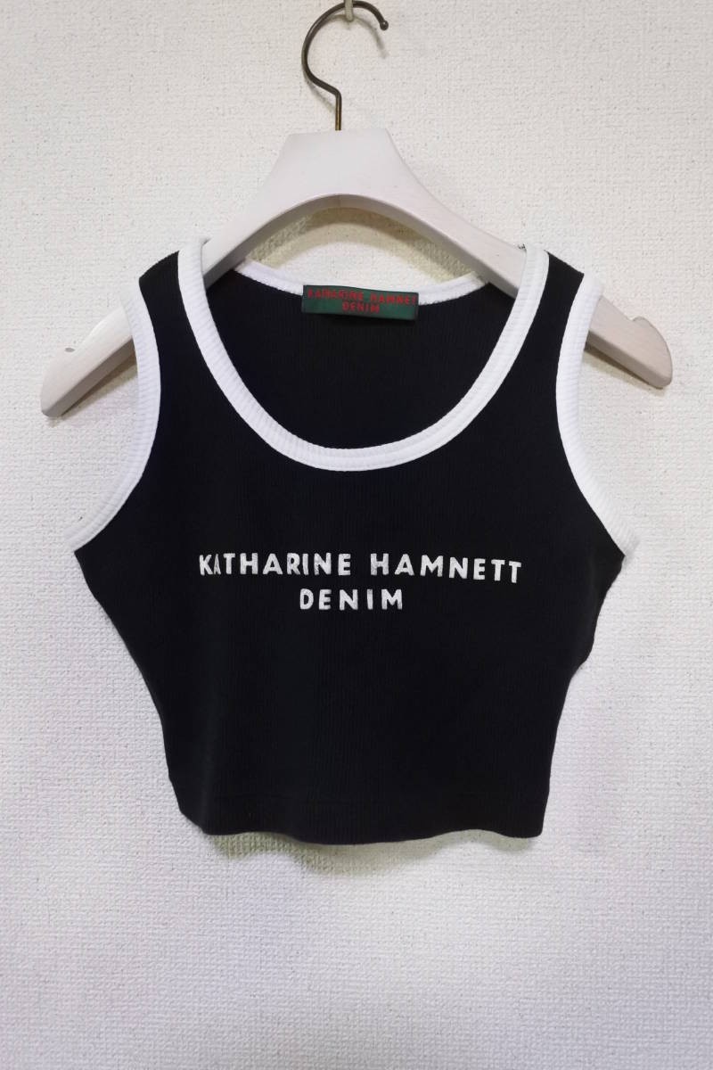> 90's KATHARINE HAMNETT DENIM タンクトップ ショート丈 クロップド丈 size M ブラック 日本製 Y2K