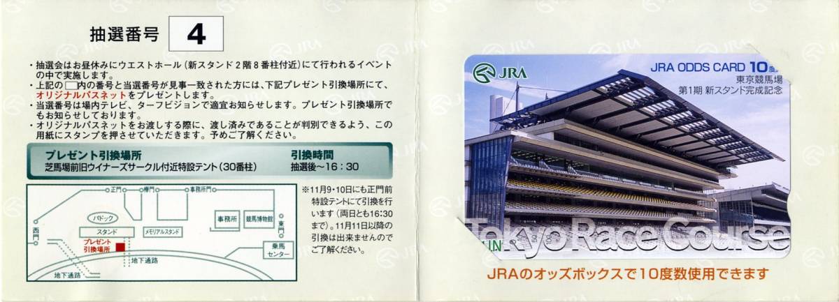 - ★JRA 非売品 オッズカード 10度数 東京競馬場 第1期 新スタンド完成記念 台紙付き 未使用 美品 競馬 即決