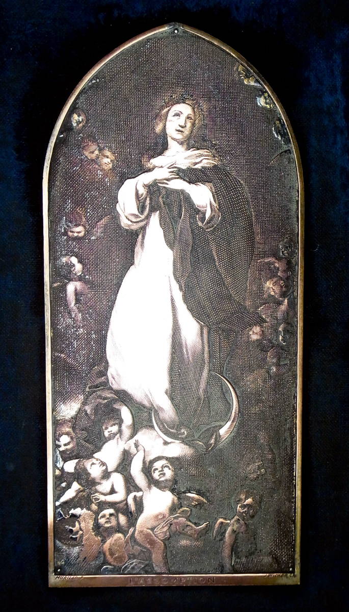 - 貴重 フランスアンティーク Wicker ヴィッケル作 無原罪の御宿り ムリリョ 聖母マリア 智天使達 下弦の月 小祭壇 イコン 細密グラヴュール