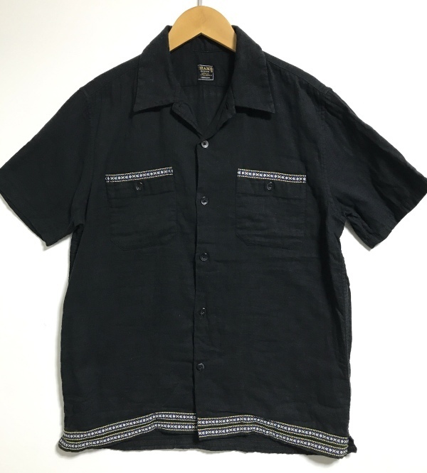 - 【BEAMS】ビームス 開襟シャツ 黒 M チロリアンテープ アメカジ ヴィンテージスタイル 良品
