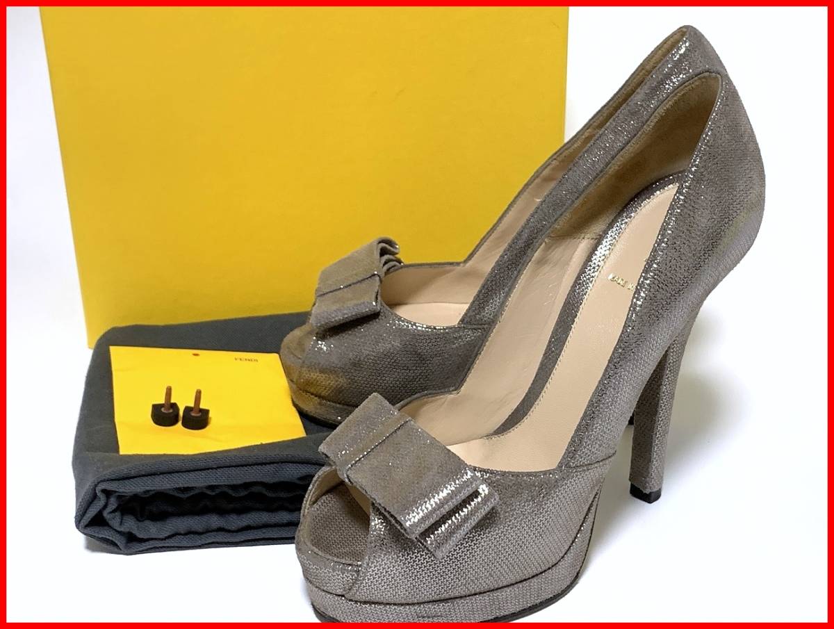 - 即決 FENDI フェンディ 37.5≒24cm サンダル パンプス シルバー 箱・保存袋 レディース jtu