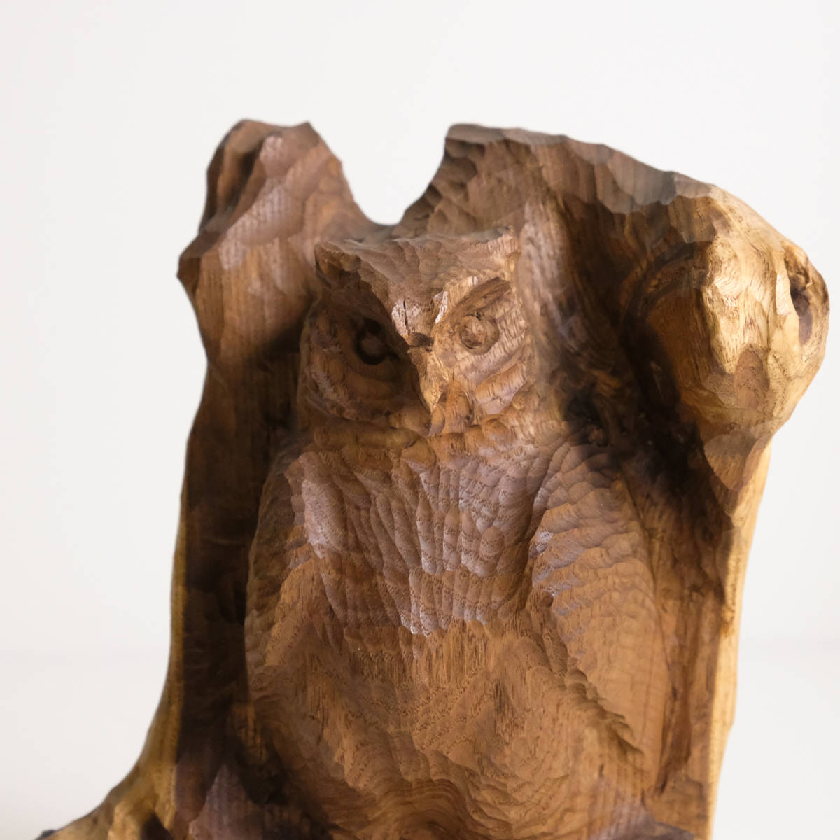 - 木彫のフクロウ 梟 大和彫 北海道 民芸 木彫り 木製彫刻 飾り オブジェ 置物 民藝 鳥