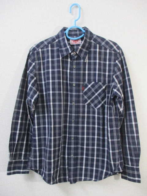 > ★値下げ★エドウィン EDWIN RANCH AND WESTERN LARGE チェックシャツ 濃紺・白 Lサイズ