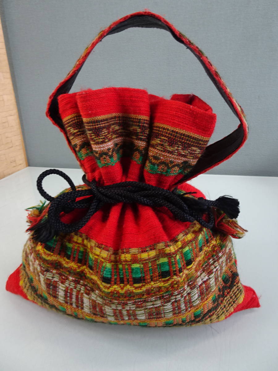 - 北海道伝統美術工芸村 優佳良織工芸館 手織つむぎ 巾着 ハンドバック ミズバショウ 中古