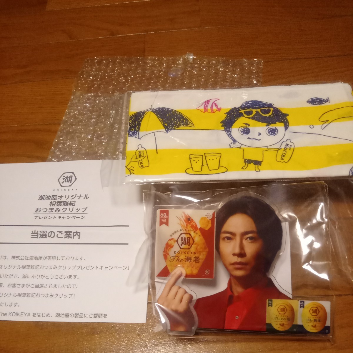 > 即決! 当選品 湖池屋 相葉雅紀 クリップ&キリンメッツ兄弟 相葉雅紀&大野智 手ぬぐい