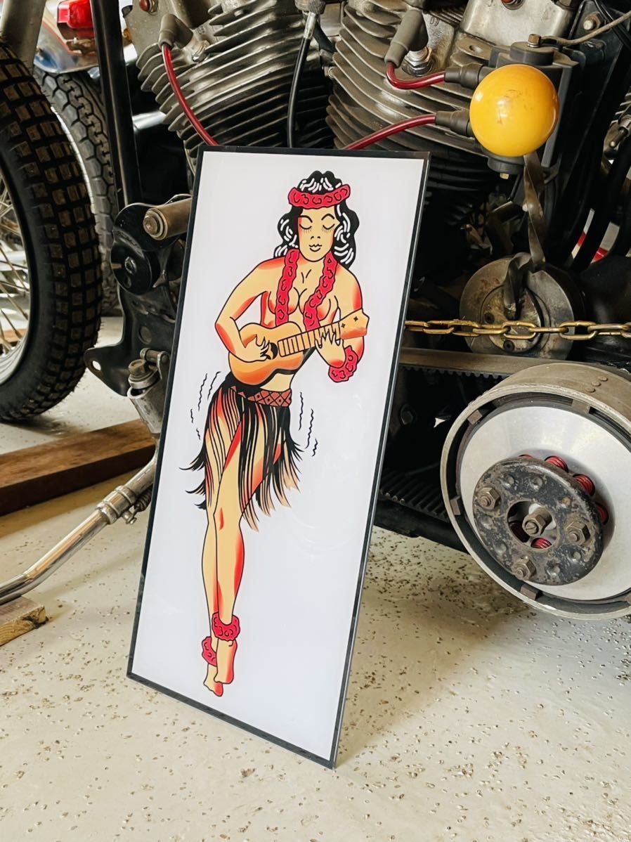 - フラガール 看板 ハワイ ハーレー ナックル ショベル パンヘッド トライアンフ ソフテイル ガレージ チョッパーナックル アイアン 雑貨