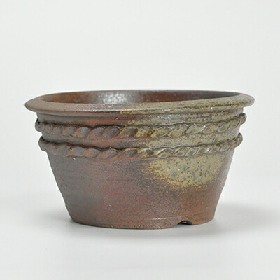 - 盆栽鉢 作家鉢 5号 二重縄中深鉢 伊藤光伸作 幅16.2cm×高さ9cm 陶器