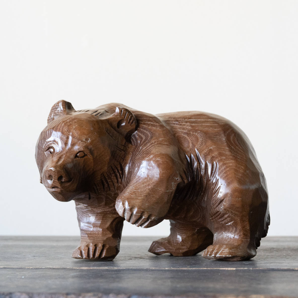 - 木彫り熊 木彫熊 置物 オブジェ 古道具 民芸 北海道 木彫り 木製彫刻