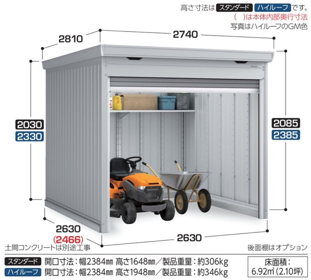 - 地域限定送料無料 限定地域以外は発送できません。 イナバ物置 イナバ製作所 バイク保管庫 一般型 ハイルーフ FM-2626HD