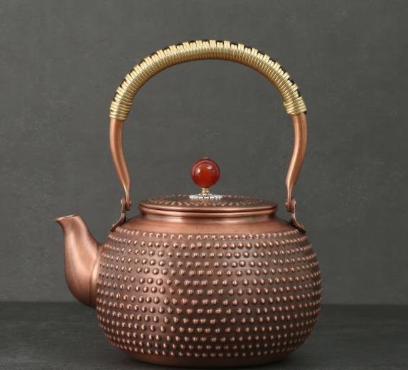 - 人気美品★ ハンドメイド絵柄 塗装なし 茶壺 提梁壺 煮茶壺 茶道具 職人作り 銅ティーポット