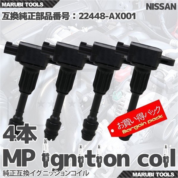 > 【送料無料】イグニッションコイル ニッサン キューブ マーチ 他 22448-AX001 4本 3Pinタイプ-029