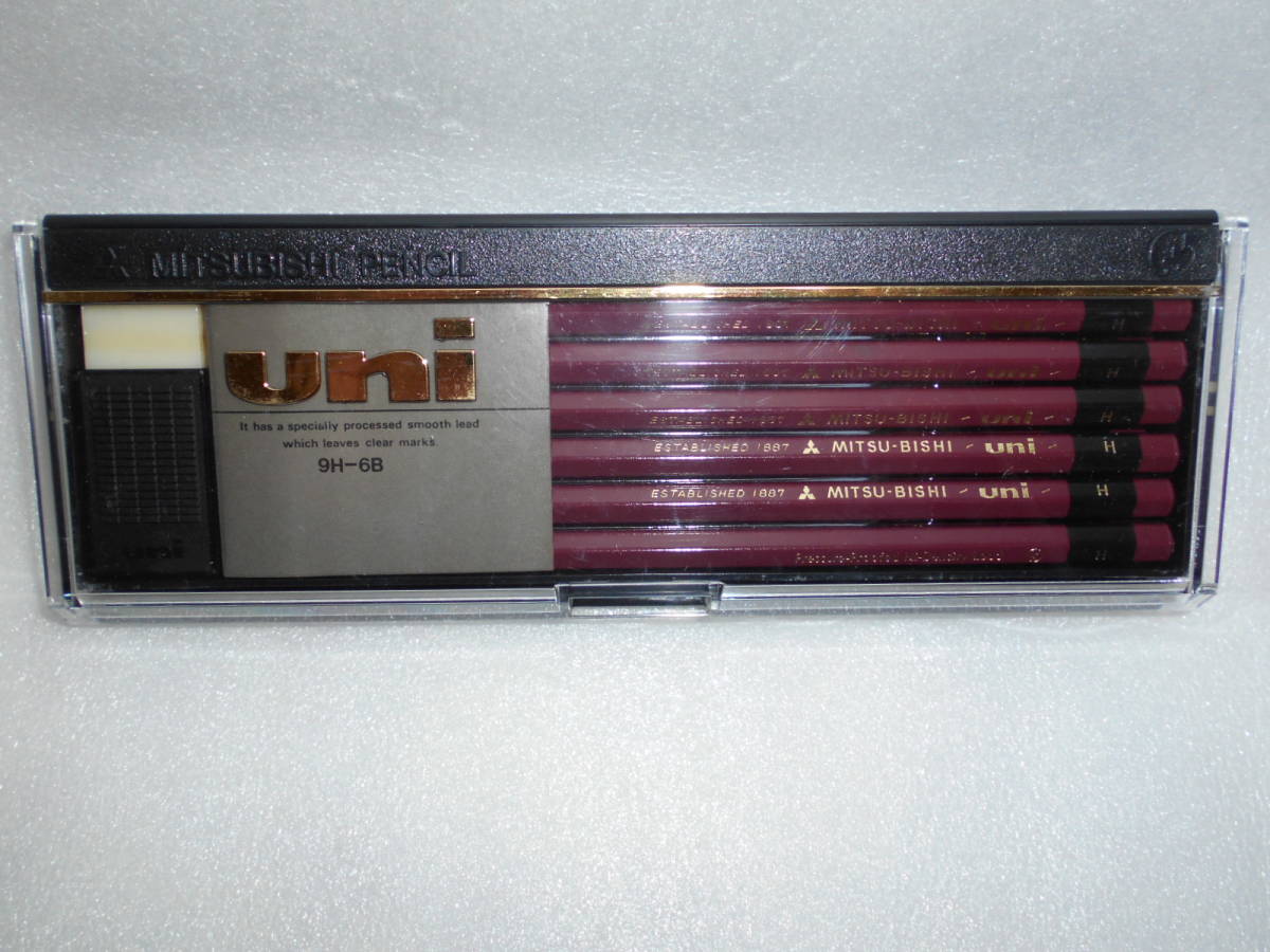 - 三菱鉛筆 uni H 1ダース(12本) 消しゴム付き 外ケースにキズあり 開封品