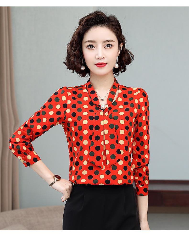 - 【レッド★Lサイズ】レディース シャツブラウス 長袖