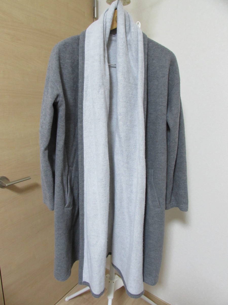 - 2回のみ着用の美品■長袖ロングカーディガン■ガウン風コート■Mサイズ■ホワイトグレー■トライルーツ■ポリエステル綿