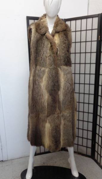 - グレー オポッサム毛皮ファー・ロングベスト サイズ6
