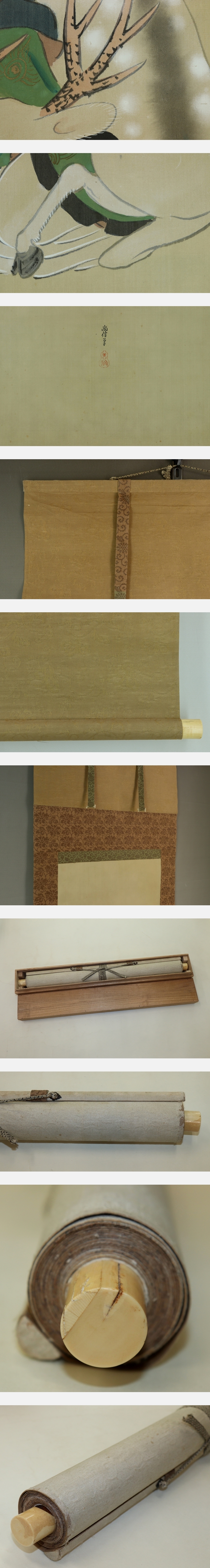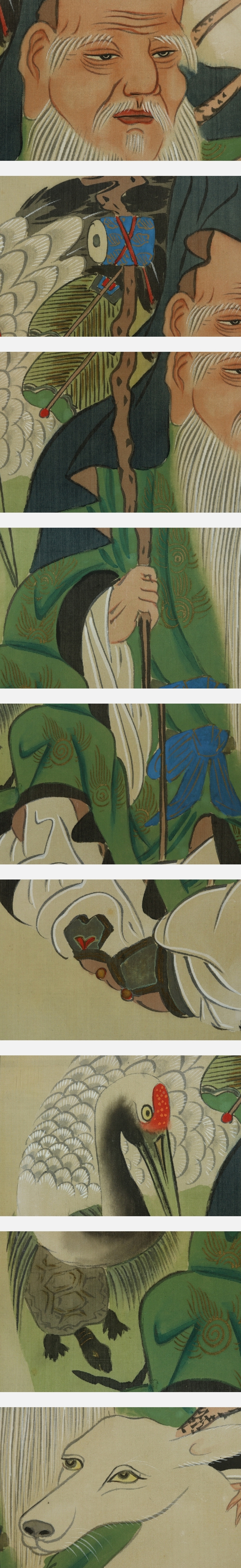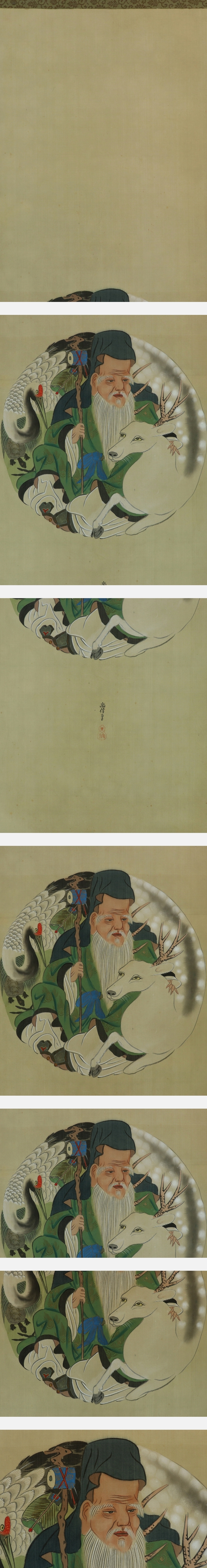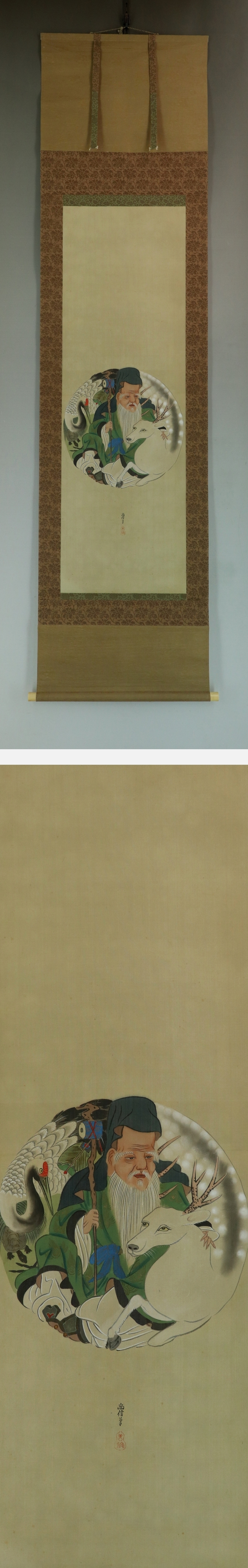 - 【真作】狩野尚信【寿老人】◆絹本◆合箱◆掛軸 u11063