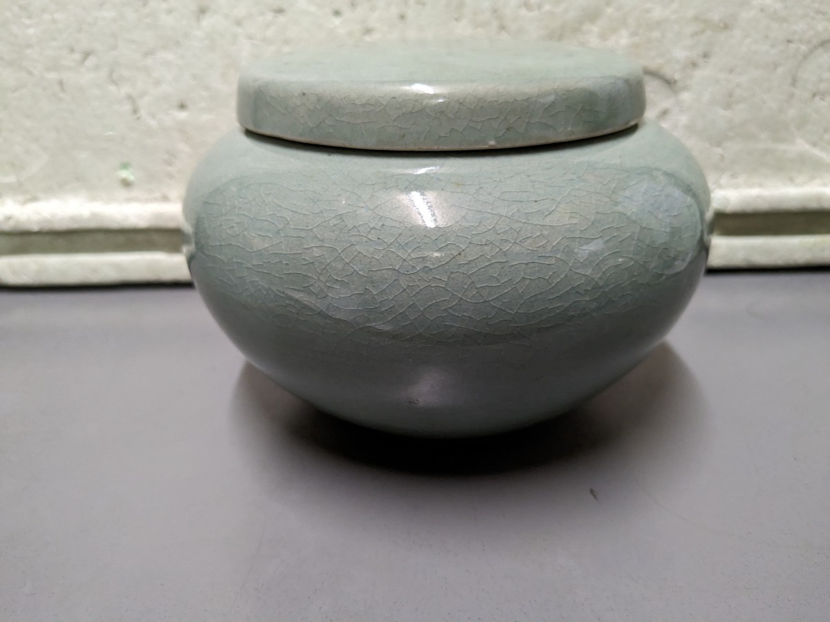 - 煎茶道具 お茶入れ 青磁 お茶の葉入れ