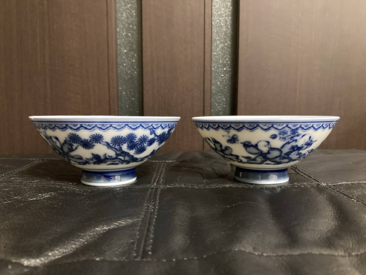 > ☆旧家蔵出し・昭和レトロ・茶碗・ご飯茶碗・2客セット・染付・茶道具・アンティーク・レトロ・古道具・インテリア雑貨☆