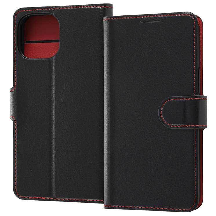 > iPhone 13mini ケース ブラック レッド 耐衝撃 手帳型カバー マグネット カードポケット 収納 スタンド シンプル おしゃれ オシャレ